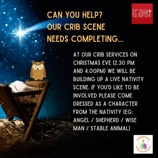 Next Tea Time Praise will be February 8th but before then please join us for one of Crib Services on Christmas Eve